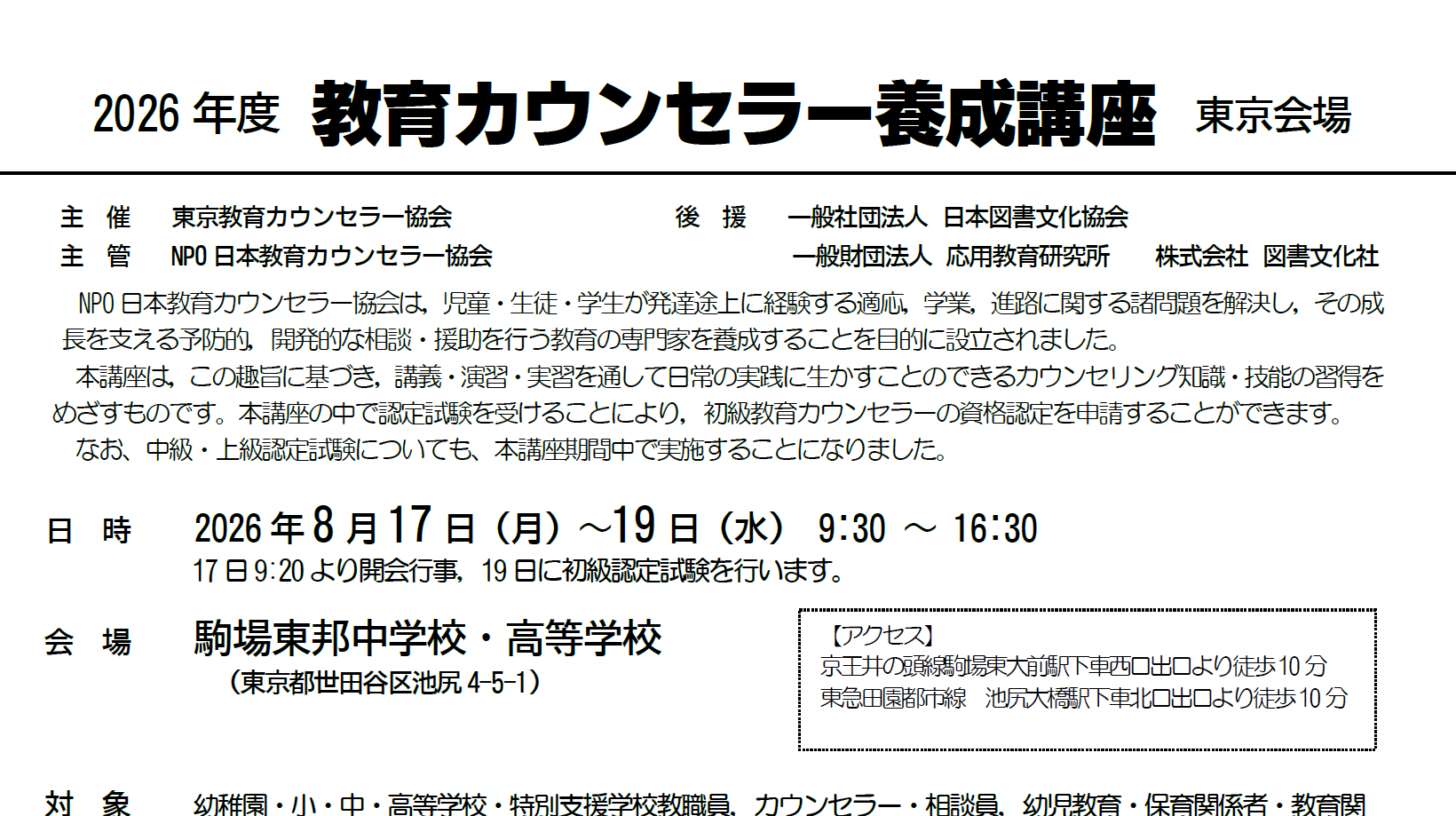 主 催 東京教育カウンセラー協会
